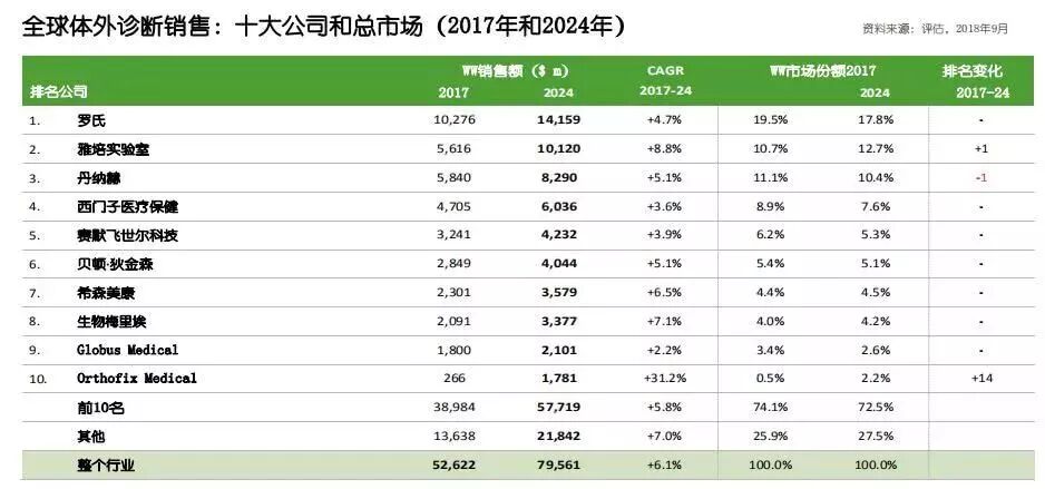 《2024年全球体外诊断医疗器械销售前10大公司榜单》