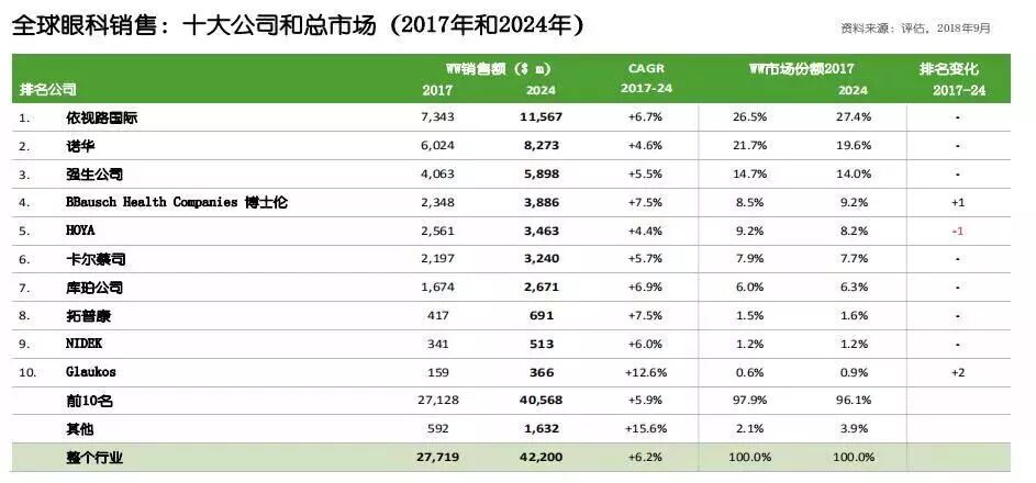 《2024年全球眼科医疗器械销售前10大公司榜单》