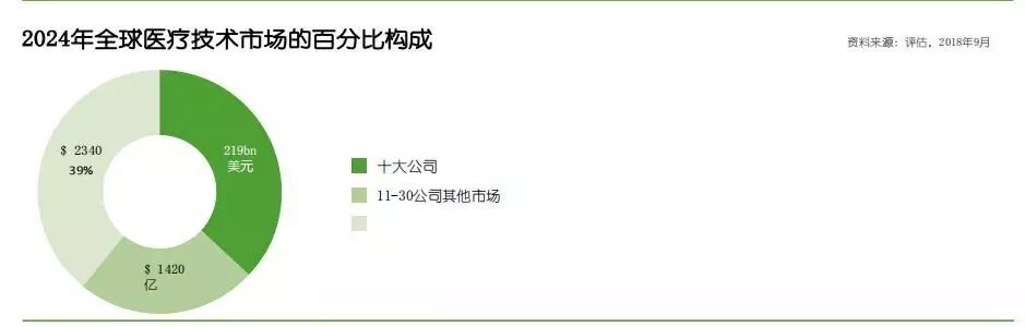 报告预测全球医疗技术行业预计将在2017年至2024年间以每年 5.6%的速度增长,最终导致2024年全球销售额达到5950亿美元!而预计美敦力依旧将成为2024年医疗器械收入最大的公司,销售额接近390亿美元。