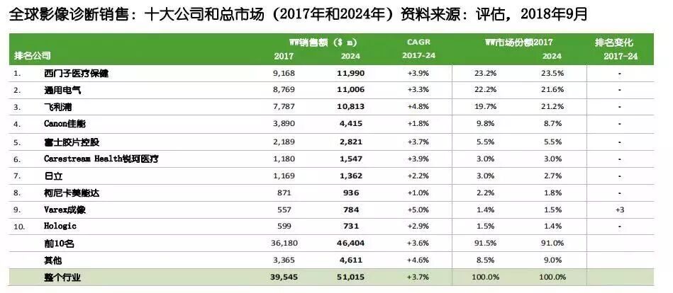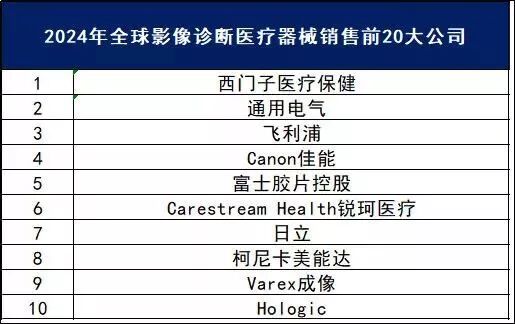 《2024年全球影像诊断医疗器械销售前10大公司榜单》