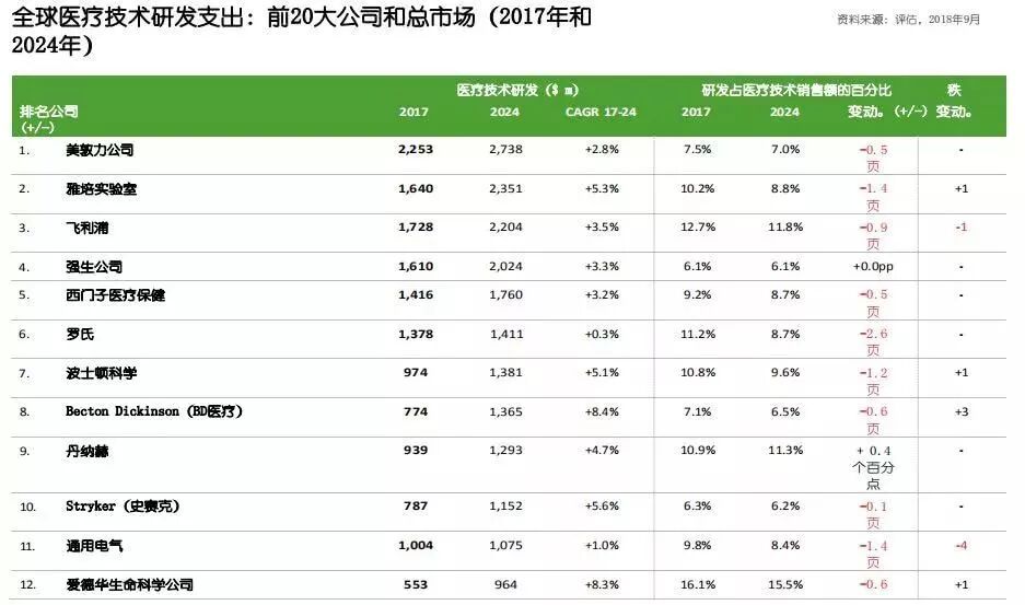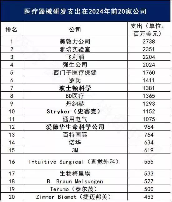 《2024年全球医疗器械研发支出前10大公司榜单》
